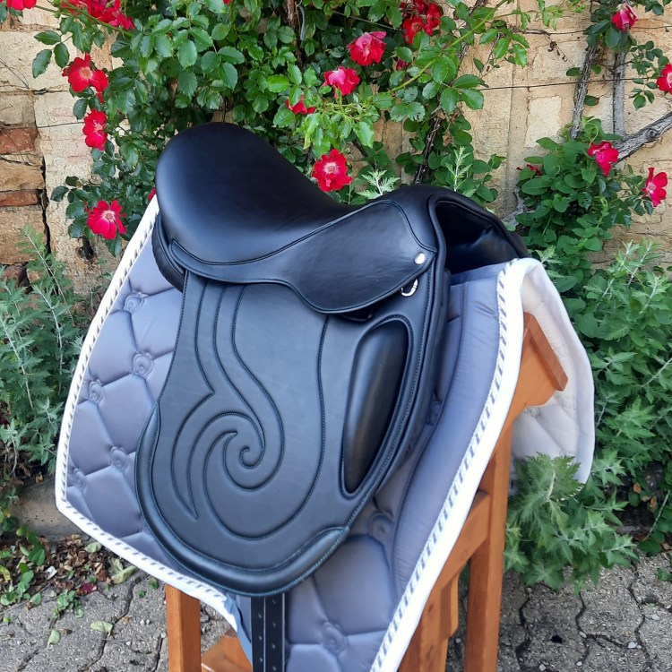 Le siège et les quartiers sont réalisés selon vos mesures, l’arçon est choisi pour correspondre au mieux au dos de votre cheval, et la selle est réalisée avec des panneaux en laine afin d’être adaptable tout au long de la vie de votre cheval.